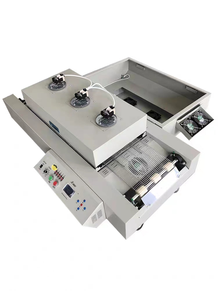 Reflow Oven T-960 selects the intelligent level sirocco and rapid infrared heating technology controlling, equipped with special design wind wheel, speed stability and uniform temperature, suit for uninterrupted soldering the LED and BGA components.