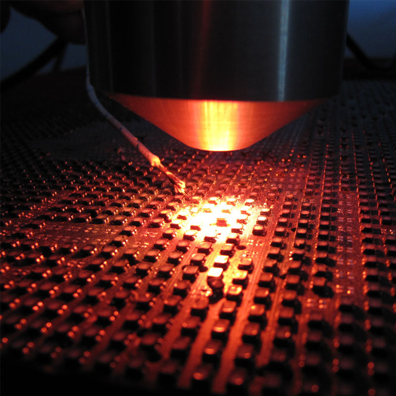 Infrared heating doesn't have air flow. Don't impact circumjacent small elements. It is suitable for all of the flat elements. It can be used to unsolder BGA, SMD, CSP, LGA, QFP and PLCC, especially Micro BGA and SMD elements.