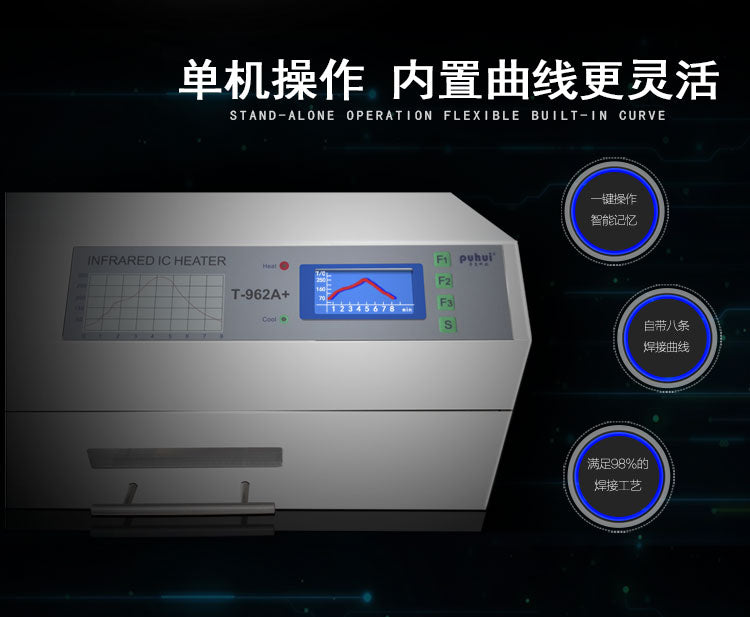 6.The temperature range is from room temp to 350℃, suit for single/double-sided PCB board and lead/leadfree paste soldering.